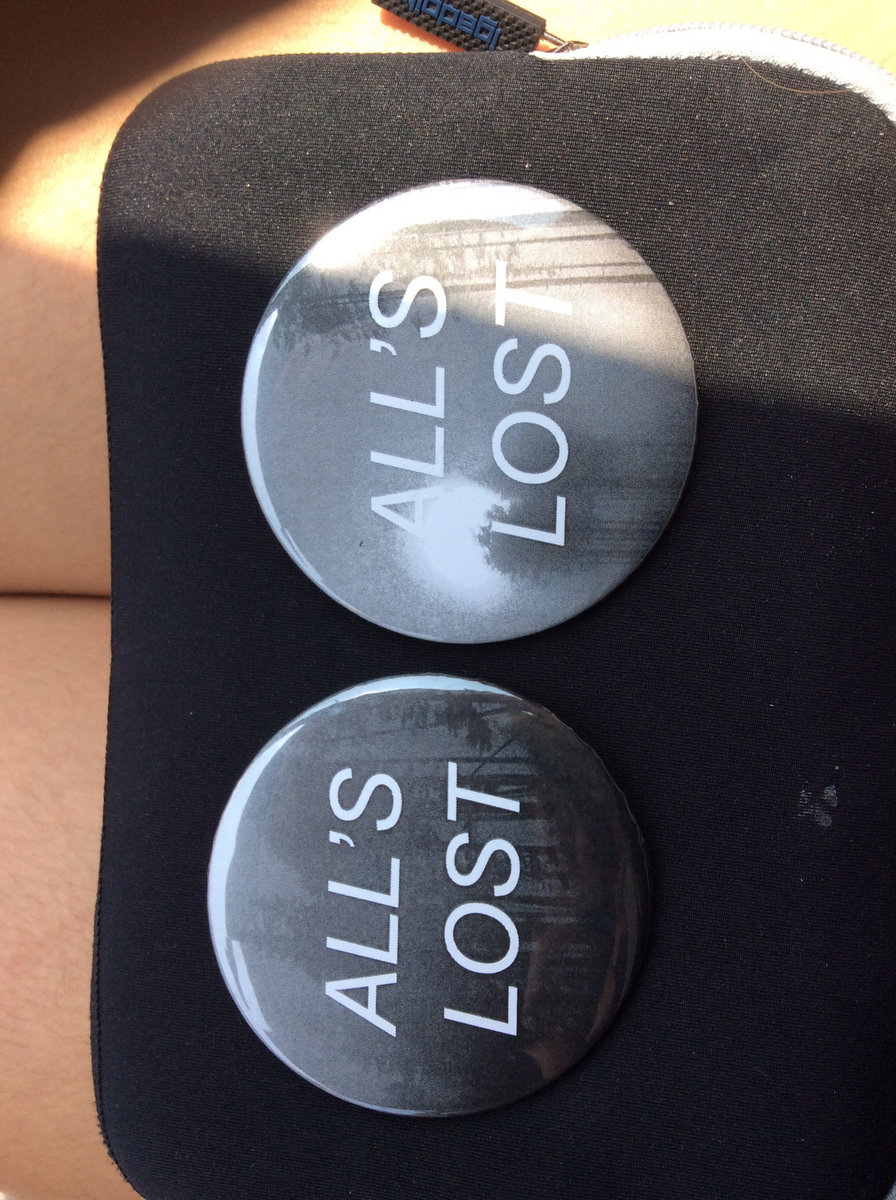your choice of two black and white 3" buttons. leave a comment with which ones you want or we will choose for you. designs: 1. RAGANA calligraphy 2. RAGANA hands/stars 3. all's lost with sunburst in trees 4. all's lost with stormy trees